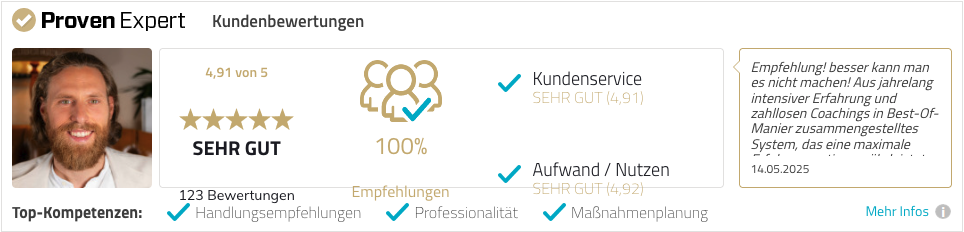Die Aufträge fließen. Dein Einkommen ist stabil, wachsend – und fühlt sich leicht an.